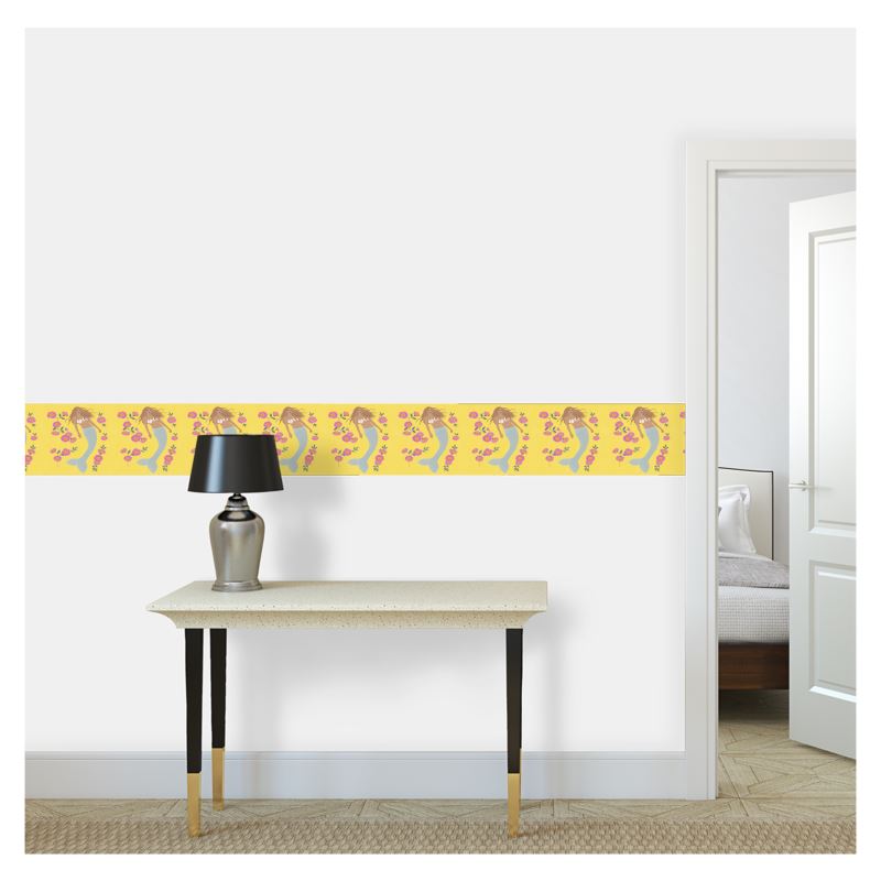A whimsical industrial wallpaper border designed to soften your space with mermaid magic and quiet drama.
